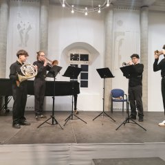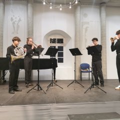 Zum Schluss des Konzertes hören wir das Blechblasensemble von Rozmurat Arnakuliyev. Viktor Maletic und Gabriel Bilicz,Trompete, Raphael Faur (Musikschule Heilbronn),Horn und Felix Eberlein(Musikschule Heilbronn), Posaune beenden das Konzert mit einem barocken „Rondeau“ und drei mitreißenden Sätzen aus der „Spiritual Jazz Suite“ von Lennie Niehaus klanggewaltig. Sie werden mit großem Applaus belohnt.
