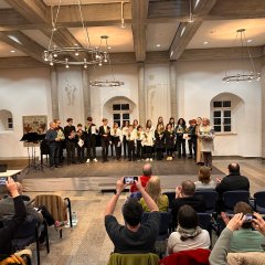 Nach vielen lobenden Worten an die Preisträger*innen und auch die Musikschulleiterin überreicht die Bürgermeisterin Birgit Hannemann die Urkunden und einen Büchergutschein von der Stadt Weinsberg. Sowohl die Schüler*innen als auch die Lehrkräfte und die Musikschulleitung freuen sich sehr über die Wertschätzung ihrer Leistungen durch die Bürgermeisterin. Von der Musikschule gibt es Blumen und ein kleines Musikwörterbuch, damit die jungen Musiker*innen die Bedeutung aller musikalischer Bezeichnungen nachschlagen können.